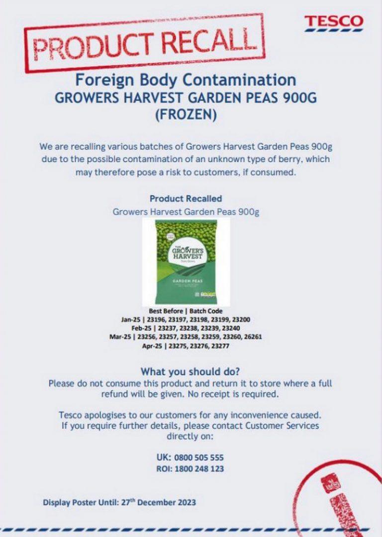 6 January 2026Recent Product Recalls at Tesco Tesco is recalling various Tesco Pates as they have been labelled with an incorrect use by date printed on the pack. The recall was issued on 3rd January 2026, affecting three popular varieties that could pose serious health risks to consumers. The recall covers Coarse Farmhouse Pate, Coarse Ardennes Pate, […]