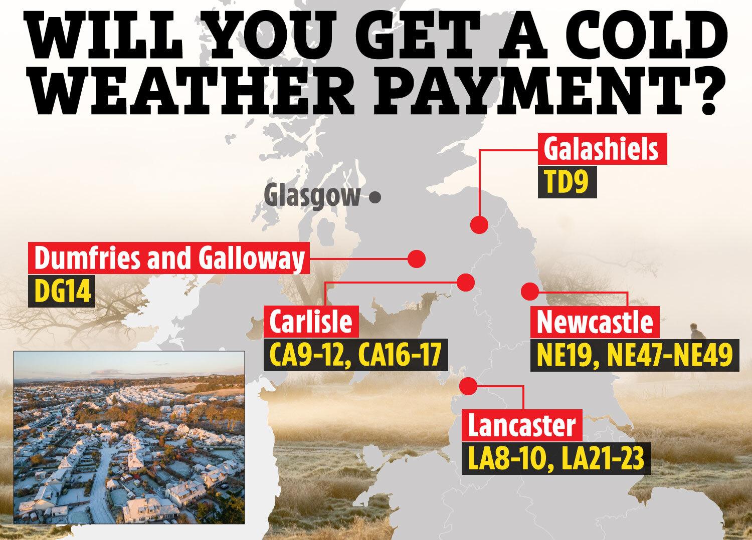 A payment is triggered every time there’s a seven-day period of freezing temperatures, so you could receive multiple £25 payments during a long cold spell. This means households in particularly cold areas could receive several payments throughout the winter season.