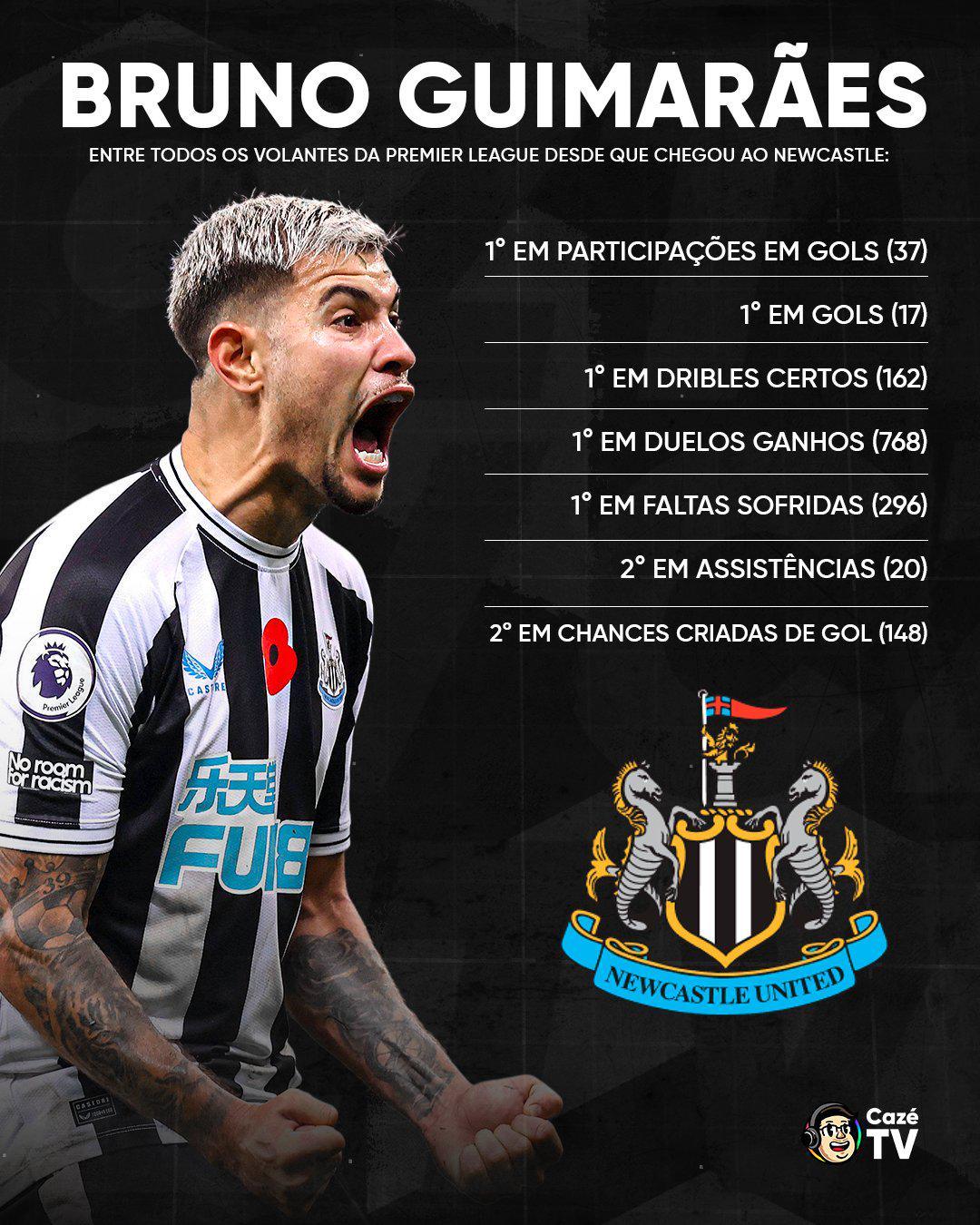 In January 2022, Guimarães made a significant leap by joining Newcastle United in the Premier League for a reported fee of around £40 million. His impact was immediate, helping to transform Newcastle’s midfield and playing a crucial role in their strong finish to the season. His ability to break up play, along with his passing range, has made him an integral part of the Magpies’ game plan.
