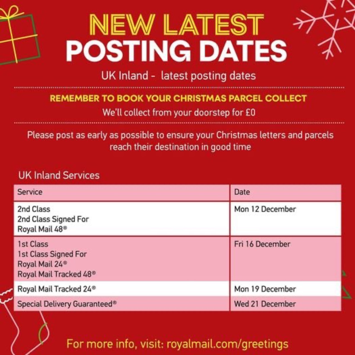 UK Domestic Posting Deadlines for Christmas 2024