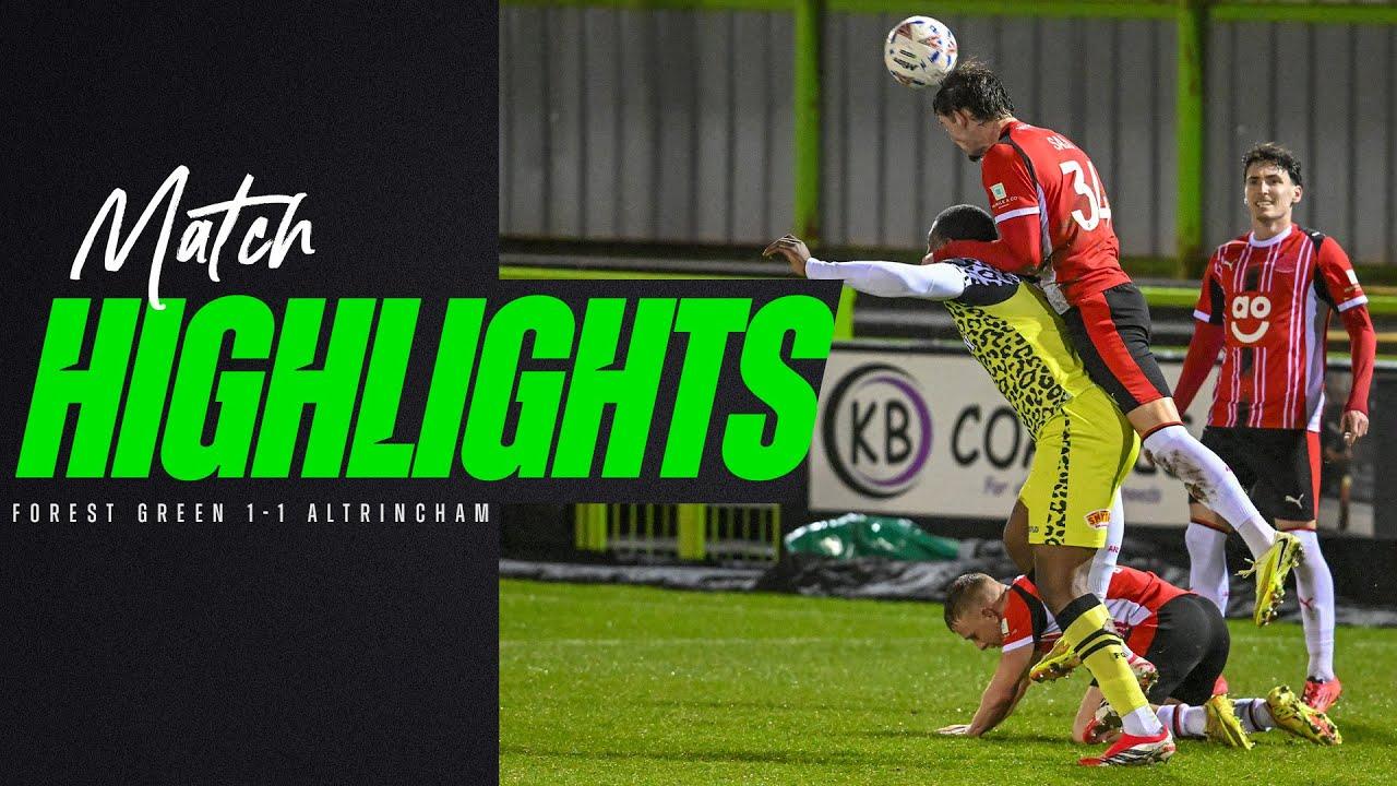 The match finished 1-1, with Altrincham taking a shock lead inside the opening quarter-hour. Ollie Crankshaw scored in the 11th minute, his sixth goal in seven games, converting from around 10 yards to put the visitors ahead. Forest Green pressed for a response and were denied at least one certain equaliser by a superb low save from Altrincham goalkeeper Luke Hutchinson, who kept out a strike from Kyle McAllister.